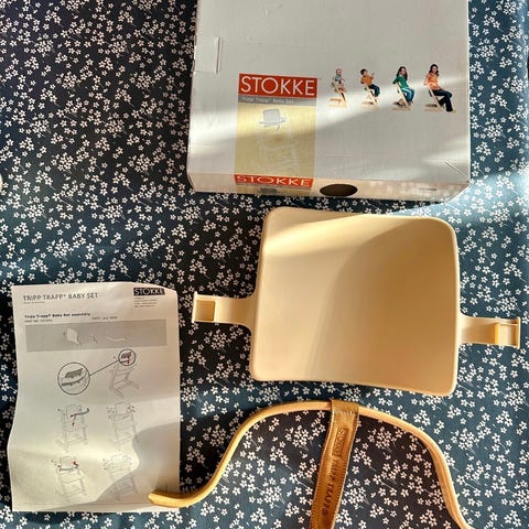 Pent brukt Newborn sete til Stokke Tripp Trapp stol selges. Leketøyholder følger med. Fremstår som nytt. Se bilder