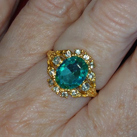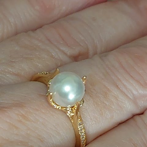Nydelig forgylt ring med en stor perle, ringstørrelse : 56, bijouteri