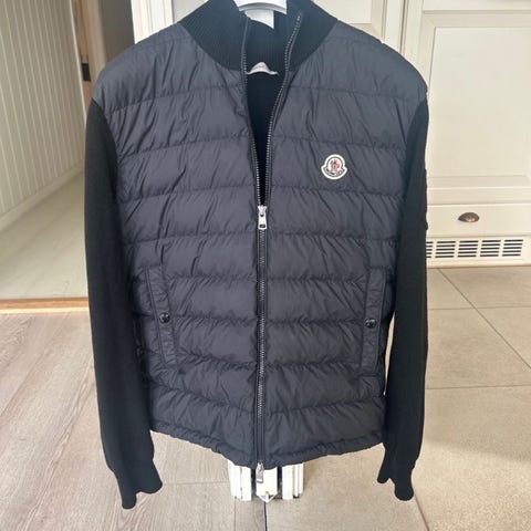 Veldig pent brukt moncler cardigan som blir solgt grunnet at jeg har vokst ut av den. Jakken er i størrelse medium, men passer nok best for de som bruker small. Den er litt kort og passer nok best noen i høyden 160-175😊Jakken har ikke nfc scan på logo og hvis jeg ikke har misforstått så har ikke litt eldre modeller dette😊Selges billigere ettersom jeg ikke har kvittering da den ble kjøpt på tise i starten av 2023:)