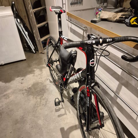 Svært lite brukt Drac banesykkel 55cm ramme, passer til personlengde 176 til 184. Sykkelen er oppgradert med 165mm krank og nytt Fizik sete. Tråkkfrekvens- og hastighetssensor følger med og det er feste for sykkelcomputer under setet. Bakhjul med frikrans for bruk på rulle følger også med.