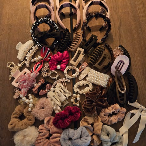 Selger en pakke med alt du trenger av hårpynt til jente.