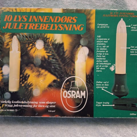Retro julebelysning fra Osram med 10 lys selges. Fra 1960 / 1970 tallet Selger den billig da det er en feil som gjør at den ikke lyser.