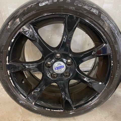 Felger har noe bruksmerker, og har boltavstand 5x108. ET,innpress 50, og felg 6,5J, senteråpn 63,4.