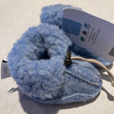 Ull tøfler til baby fra norgesull. Perfekt til barnets føtter når man er på farten for å holde dem god og varm.