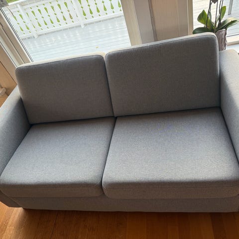 Selger en sofa, den er toseters. Kommer med hvitt trekk (sånn på bildet) og en i brun, også vedlagt bilde🌟