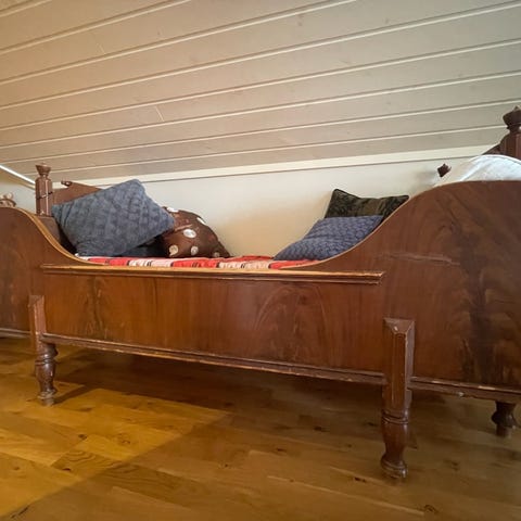 Lengde 180cm på Max, kan bli 95 cm kort. 80 cm bredde og 40 cm høyde fra gulv til madrass.