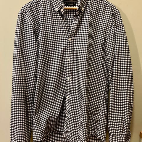 Jack & Jones M skjorte i blått med mønster, laget av bomull. Passer for menn og har knappelukking og lang erm.
