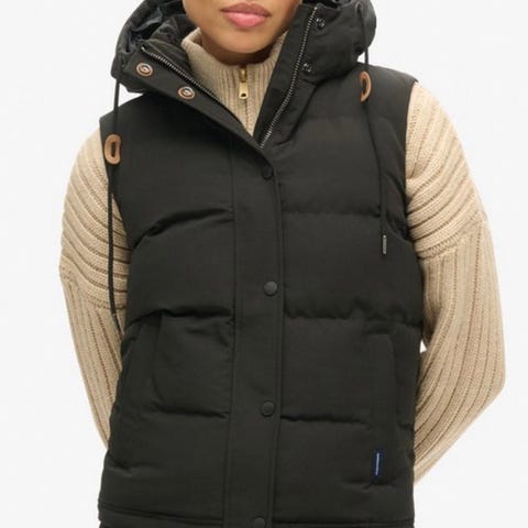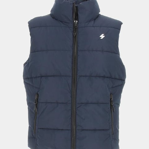 Til salgs en dunvest Superdry, str. S-M mørkblå