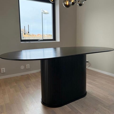 Pent brukt spisebord fra Bohus. Noe bruksmerker forekommer etter normalt bruk. Spisebordet kan overflatebehandles med lakk som selges på Bohus for en helt ny finish. Robust, tungt og nydelig bord.