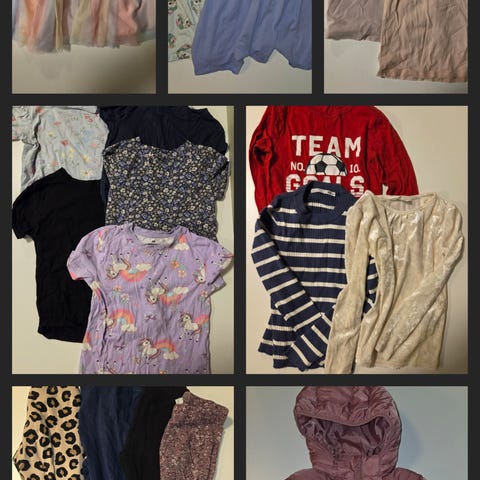 Klær til jente, det aller meste er 122-128. Noen få plagg er i 110/116 men disse ble brukt samtidig som de andre, så vil beskrive de som store i størrelse :) Kan sendes mot at kjøper betaler porto.