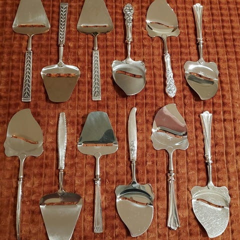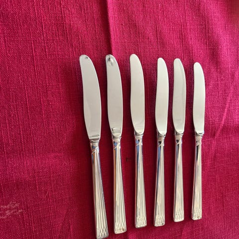 7 kniver i arvesølv. Trenger en puss alle sammen er blitt litt mørke.
