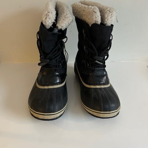 Sorel unisex i størrelse 41. Støvlene har en kombinasjon av skinn og gummi i materialet, med fôr for isolasjon og varme. Uttakbar innerstøvel i ull.
