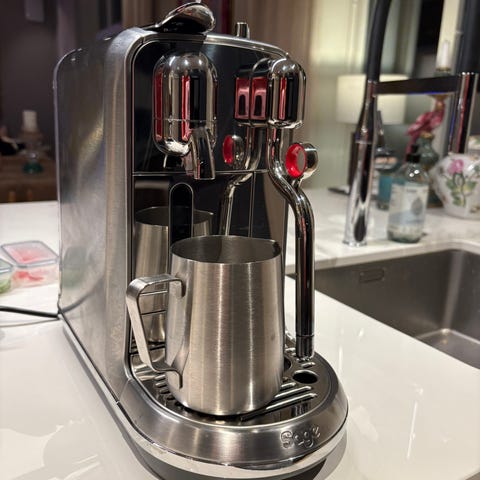 Nespresso Creatista plus espressomaskin i rustfritt stål. Maskinen har funksjoner for å lage espresso og melkebaserte kaffedrikker med presis temperaturkontroll og melkeskummer. Passer for hjemmebruk og små kontorer.