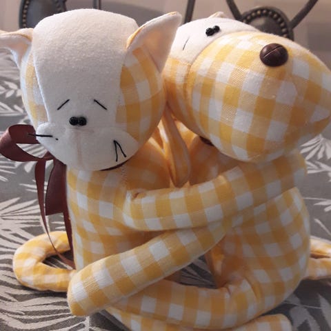 Gipsplatte med oppheng og motiv av katter.