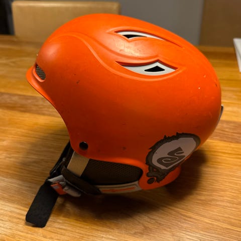 Hjelmen er pent brukt, men den har et par skrammer
