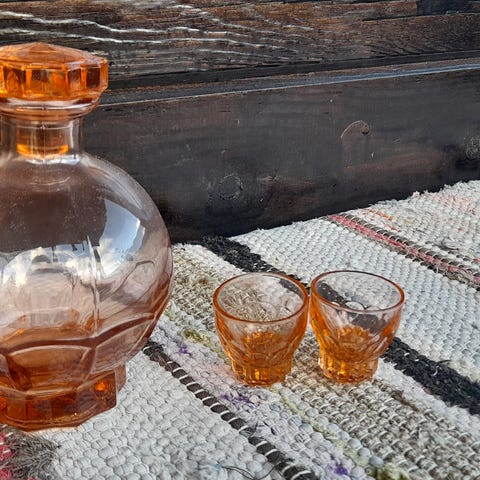 Glass karaffel klarglass flaske beholder servering borddekking interiør servise fasett