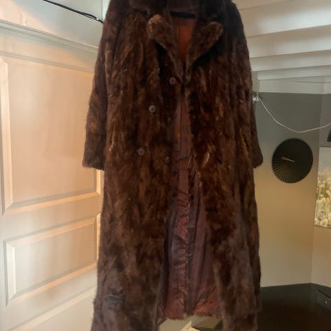 Pent brukt, god og varm med hette. Superlett. Usikker på pelstypen. Kanskje kanin