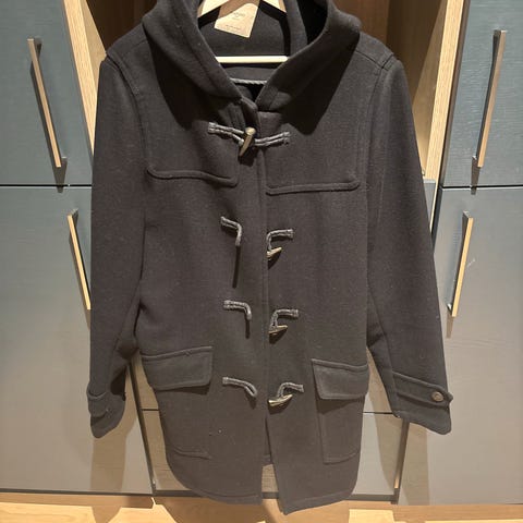 Strøken Mango Kåpe i brun farge, størrelse M for menn. Laget av ullmateriale, egnet som ytterplagg for kjøligere vær.