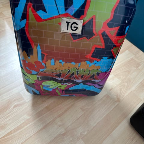 Selger reisekoffert . Bredde ca28 og lengde ca47 . Det er 4 hjul på den.