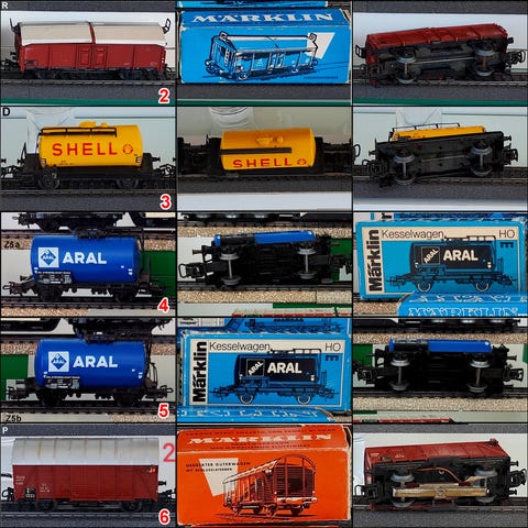 Flere godsvogner av ulike slag og med ulike grader av brukerspor. Alle er hele og i orden med mindre annet tydelig fremgår av beskrivelsen. Rabatt ved kjøp av fem eller flere på tvers av alle mine annonser. Pris pr. stk.