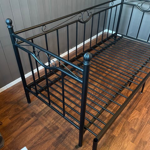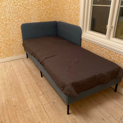 Enkel seng med madrass 90 cm brei ,kan tras ut til dobbel seng men vi er aldri brukt den.