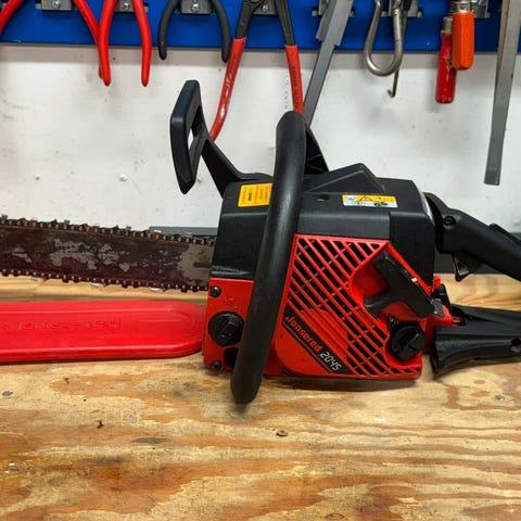 Gått gjennom sagen og funnet at den går godt. Fremre vibrasjons demper på handtaket er hjemmegjort, men fungerer bra. I sin tid, den beste på vekt versus kraft ratio. Veldig holdbare disse sagene.