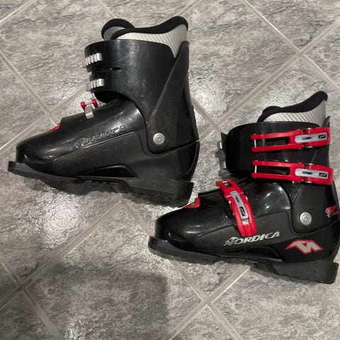 Godt brukt, men mye bruk igjen. Litt slitasje i stoff øverst på den ene støvelen, ellers hele og i grei stand.