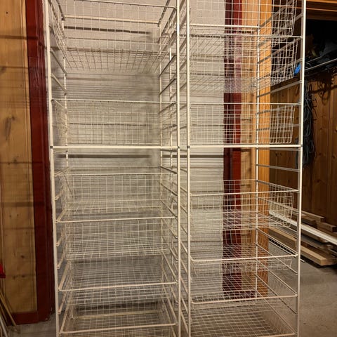 Hyllesystem med trådkurver selges billig. Brukt til oppbevaring av klær men får ikke bruk for den nå som vi har flyttet.