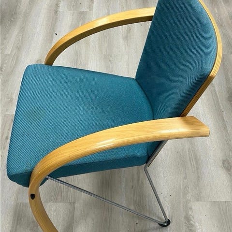 Konferansestol Chelsea, blå, kan stables. 30 stykker, men kan selges i mindre kvanta også. 500 per stol, men om mange eller alle ønskes kan pris diskuteres.