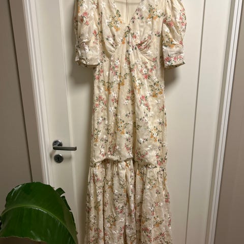 Kjøpte denne kjolen til en sommerfest men ble ikke brukt. Veldig fint fall og fin liten puff på ermene. Fantastisk grønnfarge!