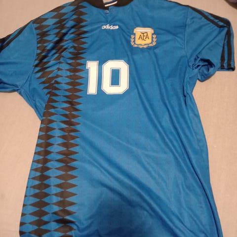 Adidas Argentina fotballdrakt med nummer 10 i blå og hvit farge. Drakten har AFA-logo og Adidas-logo i gull. Laget av pustende materiale for sport og trening.