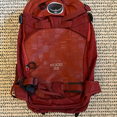 Osprey Kode 22 liter Topptursekk selges grunnet lite bruk. Feste for bæring av ski eller snowboard, samt feste for hjelm på toppen. Praktisk lomme for mobil på hoftebeltet. Mange goder løsninger på sekken.