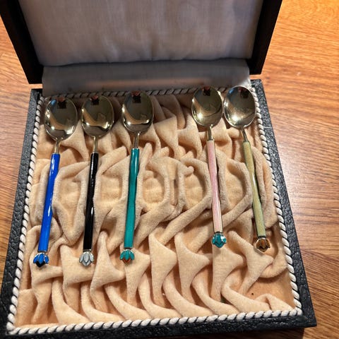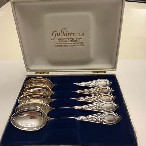 Selger 11 stk Mocca teskjeer 925s lenger 9.5 cm.Trenger en liten puss ser ikke noe skader.