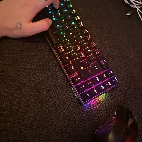 Tastaturet er 60% og har silver speed switches med 1,1 mm activation point. Meget bra for gaming, då tastaturet reagerer lynraskt på alle bevegelser.