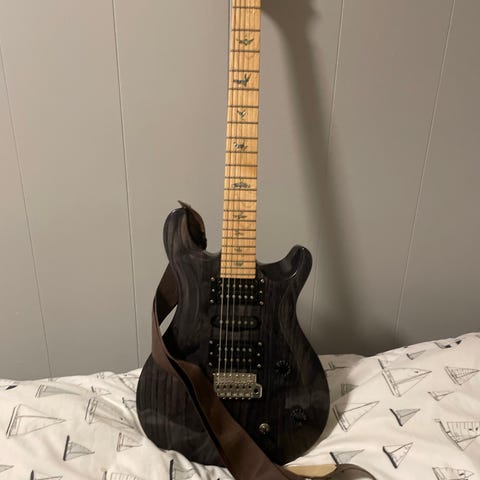 Utrolig pen og lettspilt PRS SE Hollowbody II elektrisk gitar med sunburst finish. Gitaren har hul kropp, to humbucker-pickuper, og en hals med fuglemønster på gripebrettet. Leveres med hardcase.