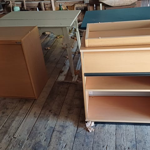 2 stk sjarmerende sjalusiskap selges samlet for 400 .-. I god stand, men et par små hull på toppen, samt litt knekt av toppen på høyresiden. Dog lite synlig. Har ikke nøkkel til låsen. Åpnes sidelengs.