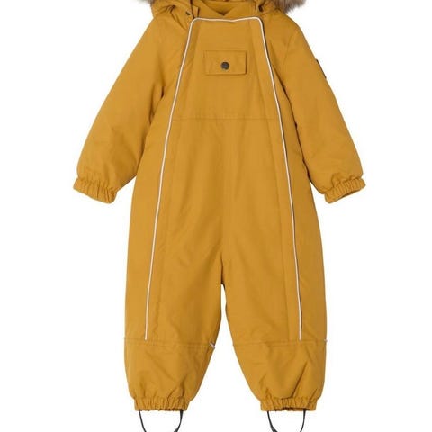 Dressen fremstår som ny, brukt noen få ganger grunnet utsatt barnhagestart. Dressen er laget av vanntett materiale med en vanntetthet på 15 000 mm og har tapede sømmer for ekstra beskyttelse mot vann. Den har en avtakbar hette med pelskant og er pustende med 7 000 g/m²/24t. Materialet er resirkulert.