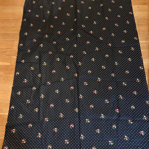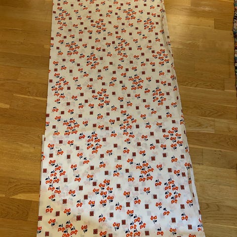 Søtt blomstrete stoff i tjukk bomull. Egner seg som møbelstoff. Bredde 113 cn, lengde 200 cm.