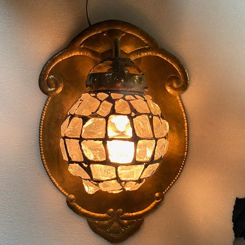 Vakkert vintage speil med dekorativ malt glassramme.