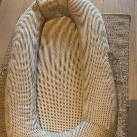Selger ett lite brukt babynest fra Yngri. Trekket kan tas av og vaskes i maskinen. Kan og festes en lekebøyle over slik at den kan brukes som «babygym». Følger og med myggnett samt transportveske.