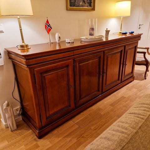 Pent brukt vitrineskap til salgs med 3 skap og 6 skuffer. Må hentes på Kolbotn. Ta kontakt med Svein på tlf: 92879185 eller Camilla på tlf: 45242843