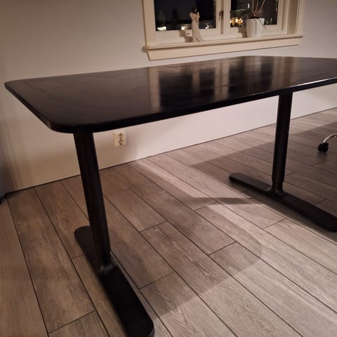 Bordet fremstår som nytt, veldigpent brukt og ingen synlige merker. Bordet er lys eikfarget/svart. Selges til halv pris.