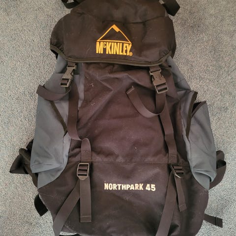 Ryggsekken har flere lommer med glidelås og justerbare skulderstropper.