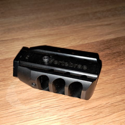 Selger en lite brukt rekylbrems fra Vertbrae, den har skutt 5 skudd gjennom seg kun. Kaliber 308. Gjenget som lydempere.