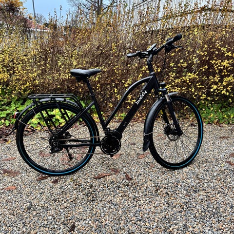 Kjøpte sykkelen fra Buddy Bike i 2021 for 28.990,- og har ikke hatt noen problemer med den. Sykkelen har rullet ca 4000 km og batteriet er fremdeles i veldig god stand. Vi er begge ca 180 cm og passer sykkelen godt, men setet kan justeres opp eller ned. Buddy Bike opplyser om at ved tilpasninger kan den passe 160-190 cm.