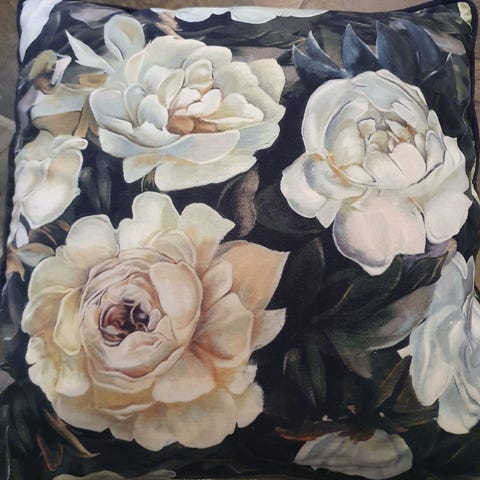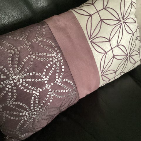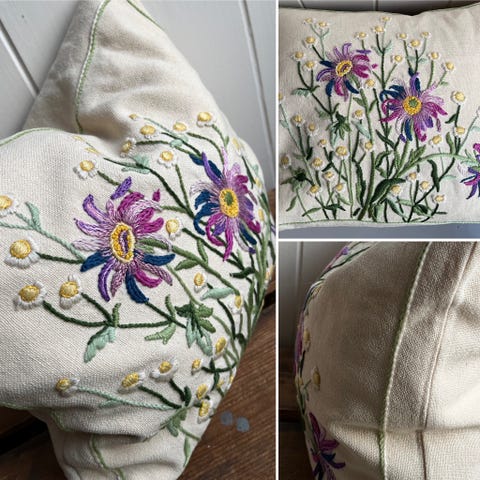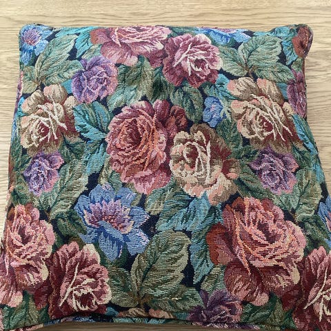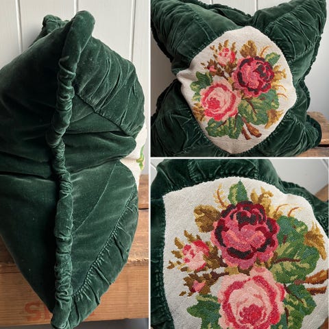 Vakker håndlaget pyntepute i brun velour og broderi -Dun