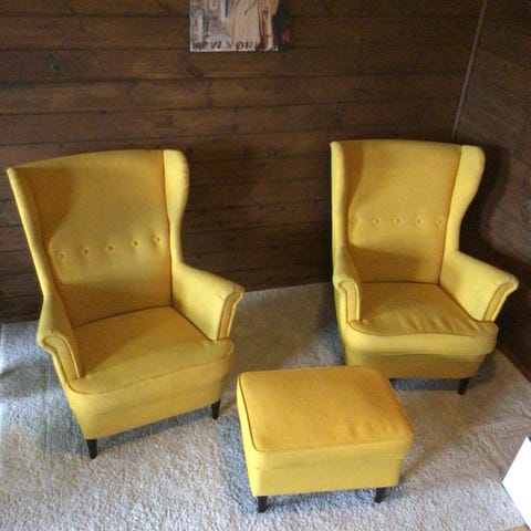 Nesten ikke brukt, og har derfor ligget lagret i skapet. Dette trekket er laget i naturmaterialer, lin og viskose, og selges ikke lengre på IKEA. Merk: selger kun trekk til selve stolen, og ikke til pallen