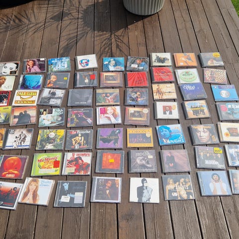Selges samlet. En samling av musikk-CDer med forskjellige artister og albumtitler. Inneholder ulike sjangere og utgivelser, egnet for musikklyttere som ønsker variasjon i samlingen sin.