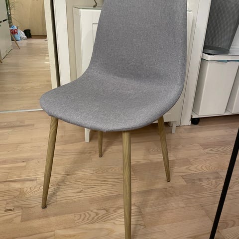 Vi selger 6 flotte spisestue stoler for kun kr 500,- pr stk. God sittekomfort! Solid bomull/lin blanding. Lysegrå. Kom og se og prøvesitt.