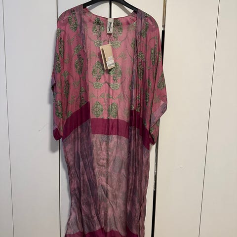 Nydelig kvalitet. Skjerfet er i silke, men er blandet med bomull slik at det blir matt. Kjennes ut som ren silke og er veldig bløtt og mykt. Ekstra pent til f.eks. lin og bomullsklær der blank silke kan bli litt feil. 30%silke70%bomull. Størrelse 65x65cm. Er så fin kvalitet at hele skjerfet kan puttes inn i hånden. Ser helt nytt ut. Blir litt ulike inntrykk etter hvilke ende man viser frem. Se bilder. Kan gjerne sende med posten for 31.-